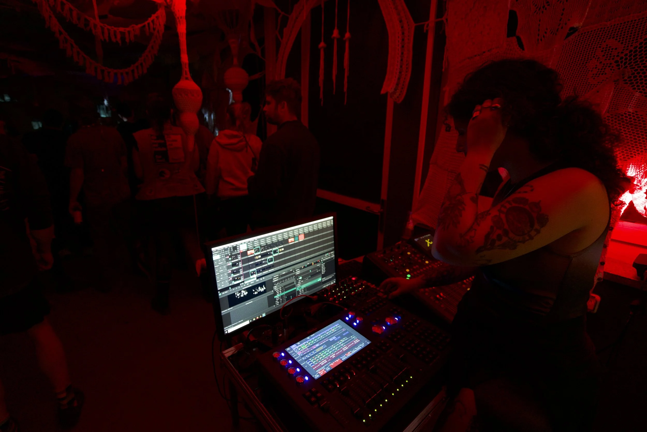 My performance responded to the architectural structure and energy of the live sets, blending digital abstraction with rhythm-based composition. The visuals were designed to both accompany and transform the space — creating an immersive, real-time experience through color, motion, and form. This work reflects my continued interest in projection-based live performance and the dialogue between architecture, audience, and image.